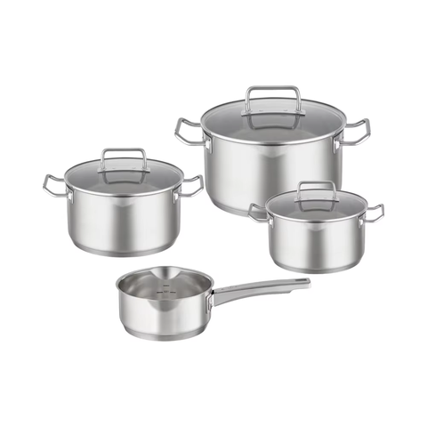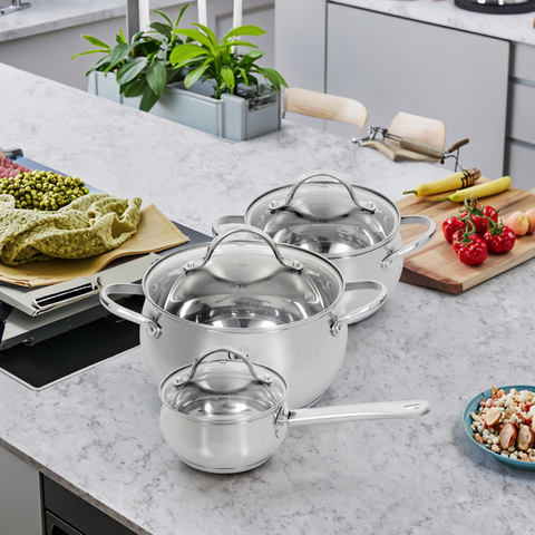 Stainless Steel Cookware Set with Glass Cover Multi-Layer Base Modern Design Eco-Friendly No Coating for Gas & Induction Cookers