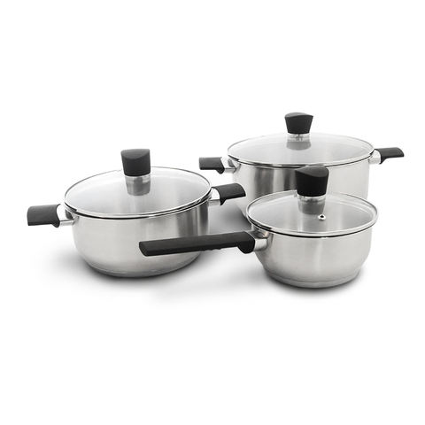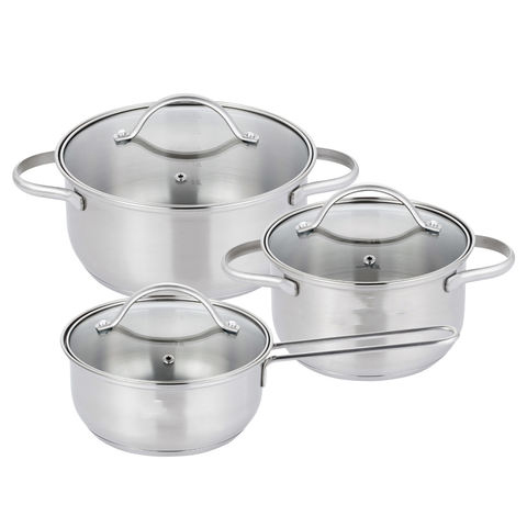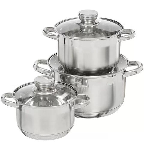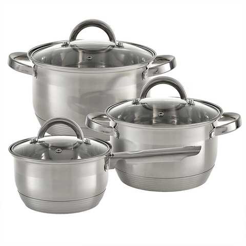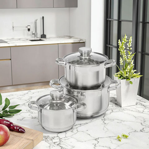 Wholesale Best Quality 6-Piece Classic Eco-Friendly Stainless Steel Kitchen Pot Set with Glass Lid for Cooking