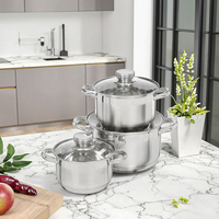 Factory Direct High Quality Stainless Steel Cooking Pot Set Low Price Kitchen Cookware Glass Cover Mirror Polish Metal