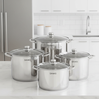 Stainless Steel Cookware Set with Glass Cover Multi-Layer Base Modern Design Eco-Friendly No Coating for Gas & Induction Cookers